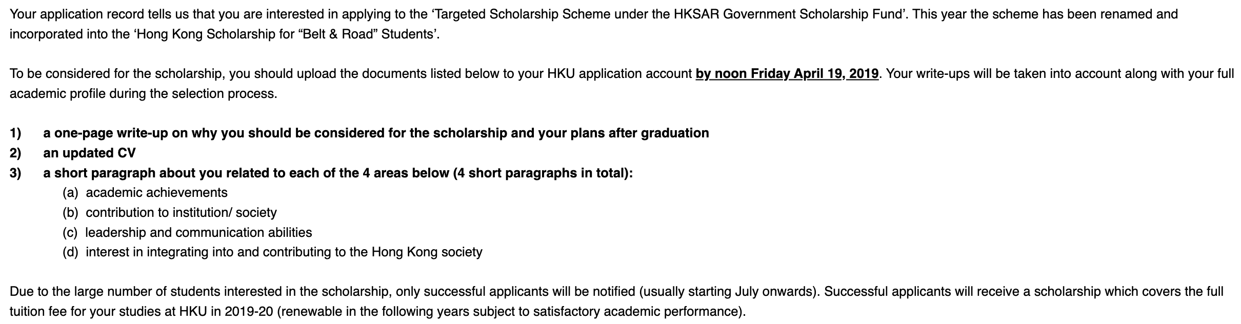 HKSAR Government Scholarship Fund Targeted Scholarship